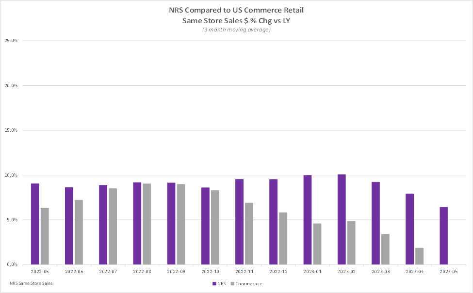 Same-store sales at NRS retailers during May increased 7.1% compared to May 2022